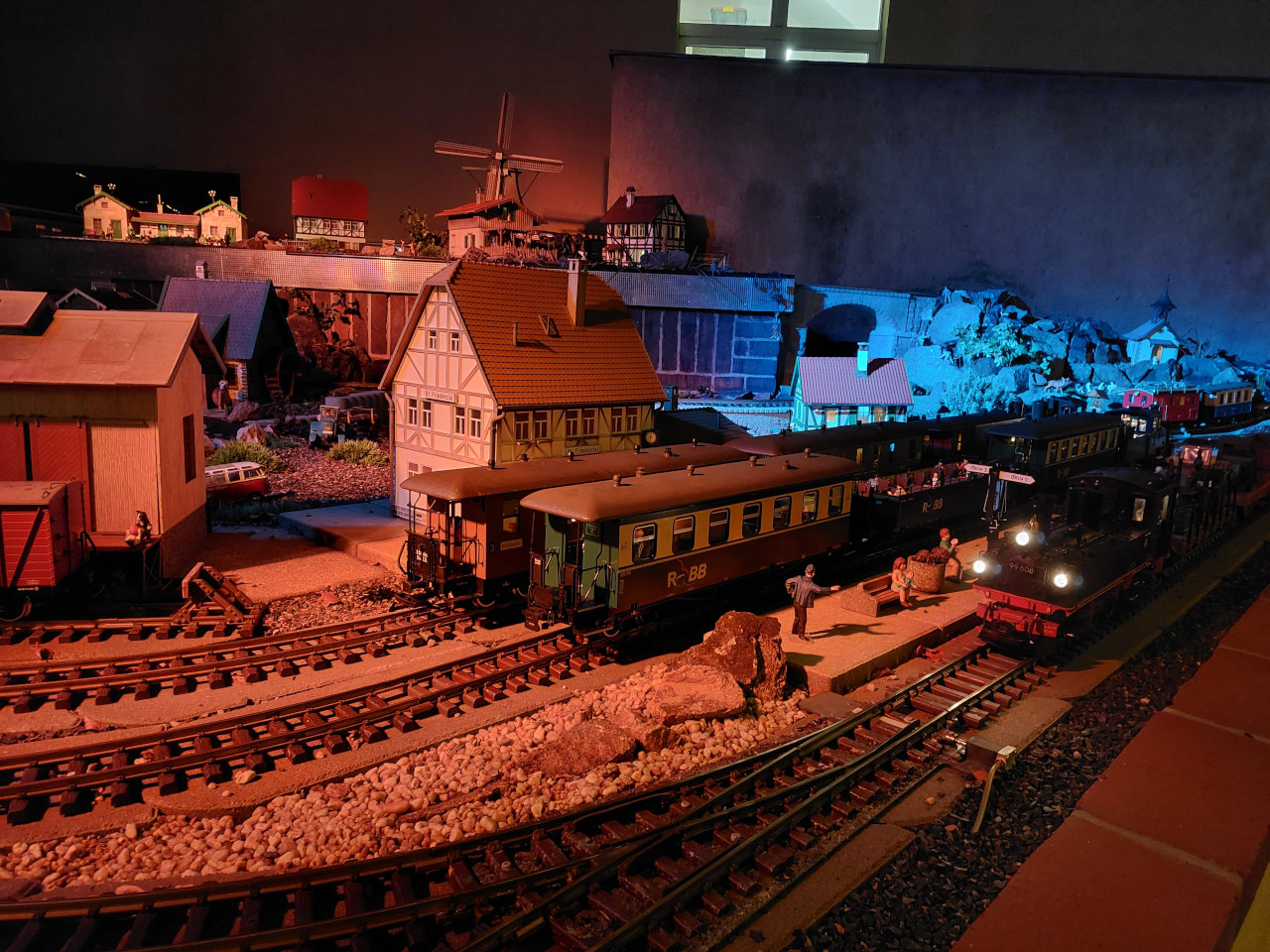 In diesem Jahr sehen Sie das neue Chemiewerk samt Bahnanschluss, das auf der H0-Anlage in die Höhe gewachsen ist. Noch einmal soll auch die Feldbahnanlage in neugestalteter Form präsentiert werden. Die Gartenbahnfreunde des Vereins arbeiten eifrig an der Zahnradbahn im Außenbereich samt Elektrifizierung. Im kleinen Ausstellungsraum wurde fleißig an der authentischen Nachbildung der Lößnitzgrundbahn im Zustand der 70er Jahre gearbeitet. In diesem Jahr stand die Beleuchtung des Bahnhofs Moritzburg im Vordergrund.